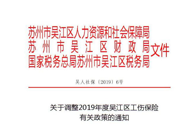 關于調(diào)整2019年度吳江區(qū)工傷保險有關政策的通知